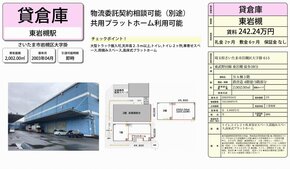 さいたま市岩槻区掛615をはじめ東京・神奈川・千葉・埼玉・横浜・川崎の貸倉庫・貸工場・貸地の情報を検索できます。さいたま市岩槻区掛615の事務所付・ホイスト・クレーン付、キュービクル、工業地域の貸し倉庫・貸し工場もプロがお探しします。さいたま市岩槻区掛615の貸倉庫・貸工場・貸地は物件数No1のテナントNEWSにお任せ下さい。さいたま市岩槻区掛615で貸倉庫・貸工場・貸地を所有のオーナー様には貸し倉庫・貸し工場の広告を掲載致しますので是非、ご相談下さい。貸倉庫・貸工場・貸地を貸したい方も、借りたい方もテナントNEWS! |